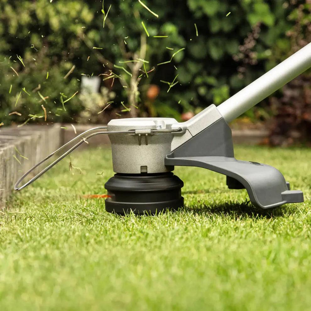 Dieser Freischneider ist serienmäßig mit einem Tap & Go-Nylon-Mähkopf ausgestattet. Klopfen Sie einfach mit dem Kopf auf den Boden und die Schnur fährt von selbst aus. Zusätzlich ist ein 3-Zahn-Schneidmesser für schwerere Arbeiten im Lieferumfang enthalten.