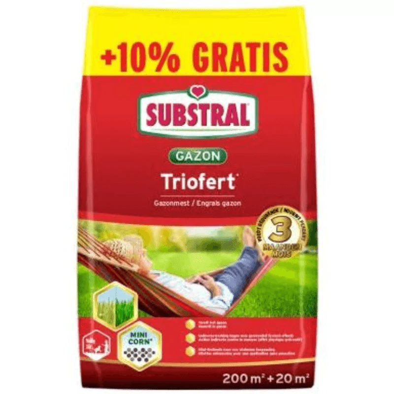 Substral Triofert versorgt Ihren Rasen bis zu 3 Monate lang mit Nährstoffen und wirkt zudem indirekt gegen Moos. Dank des zugesetzten Kalks werden die Nährstoffe besser absorbiert, was zu einer gesunden und dichten Grasnarbe führt. Eine gut geschlossene Grasnarbe minimiert das Wachstum von Moos und Unkraut, so dass Sie sich an einem schönen grünen Rasen erfreuen können.